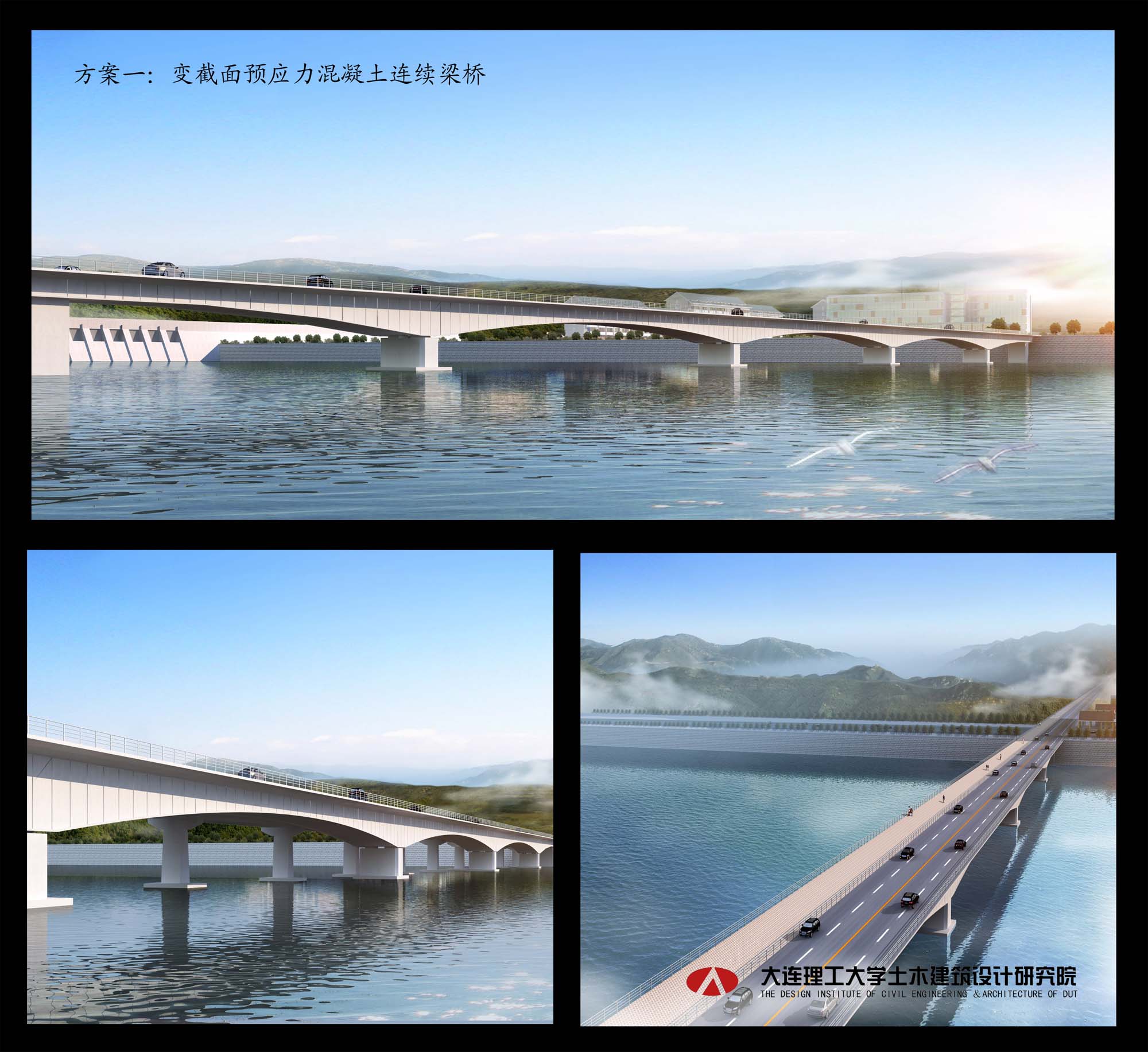The bridge is 432.2m long with the deck width of 20m, and the span arrangement is as follows: 59.2m+3x100m+59.2m=418.4m. The bridge consists of variable-section continuous box girders made of prestressed concrete, with a total investment of RMB 60.2 million.