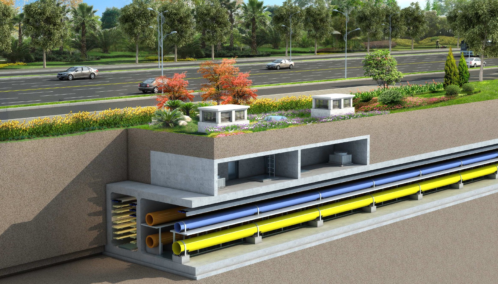 The construction of utility tunnel avoids the impacts and disturbance on public traffic and travelling caused by frequent road excavations for the laying and maintenance of underground pipelines, thus ensuring the complete and aesthetic road appearance with reduced costs of repeated pavement renovation and pipeline maintenance, as well as the pavement integrity and durability of all pipelines.