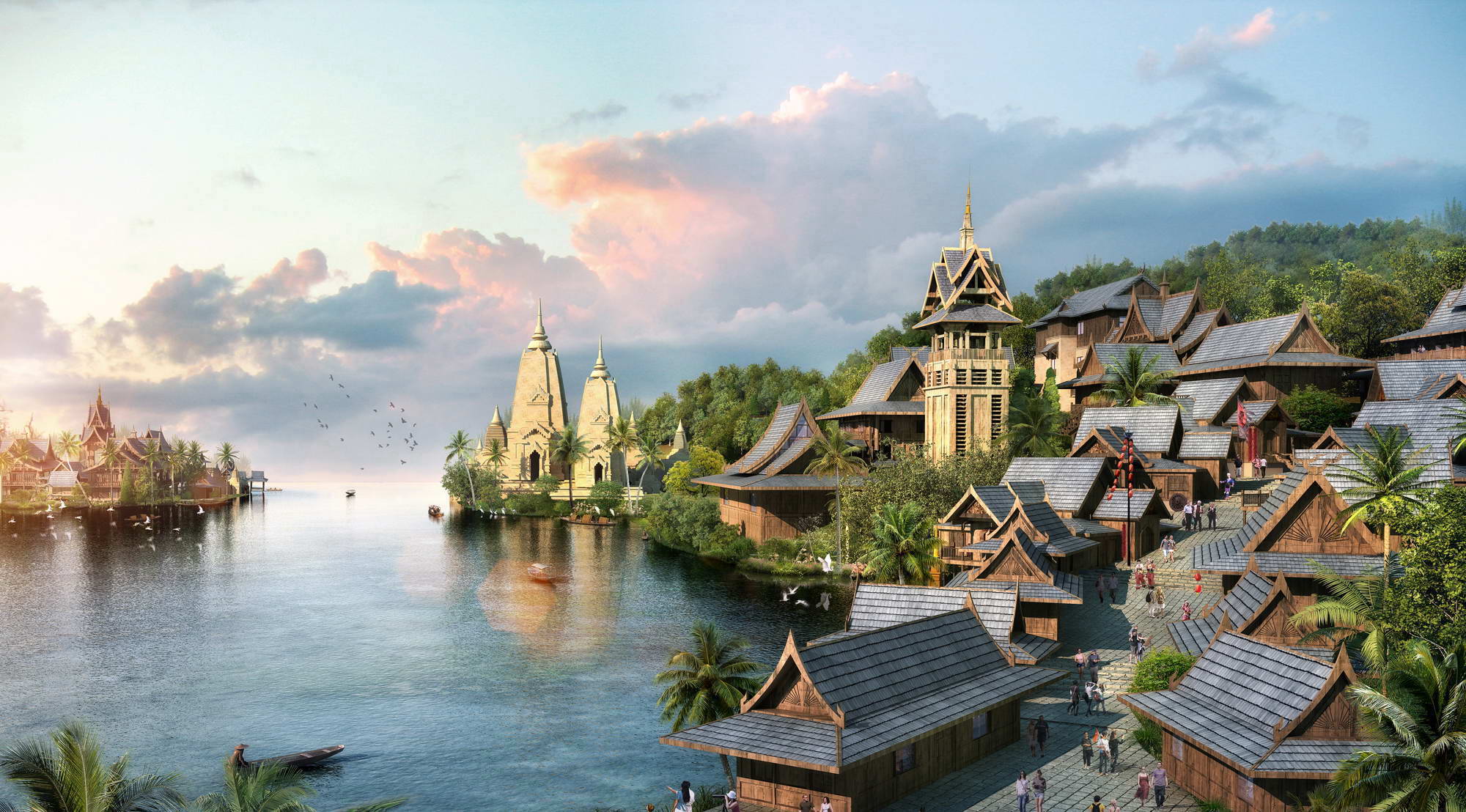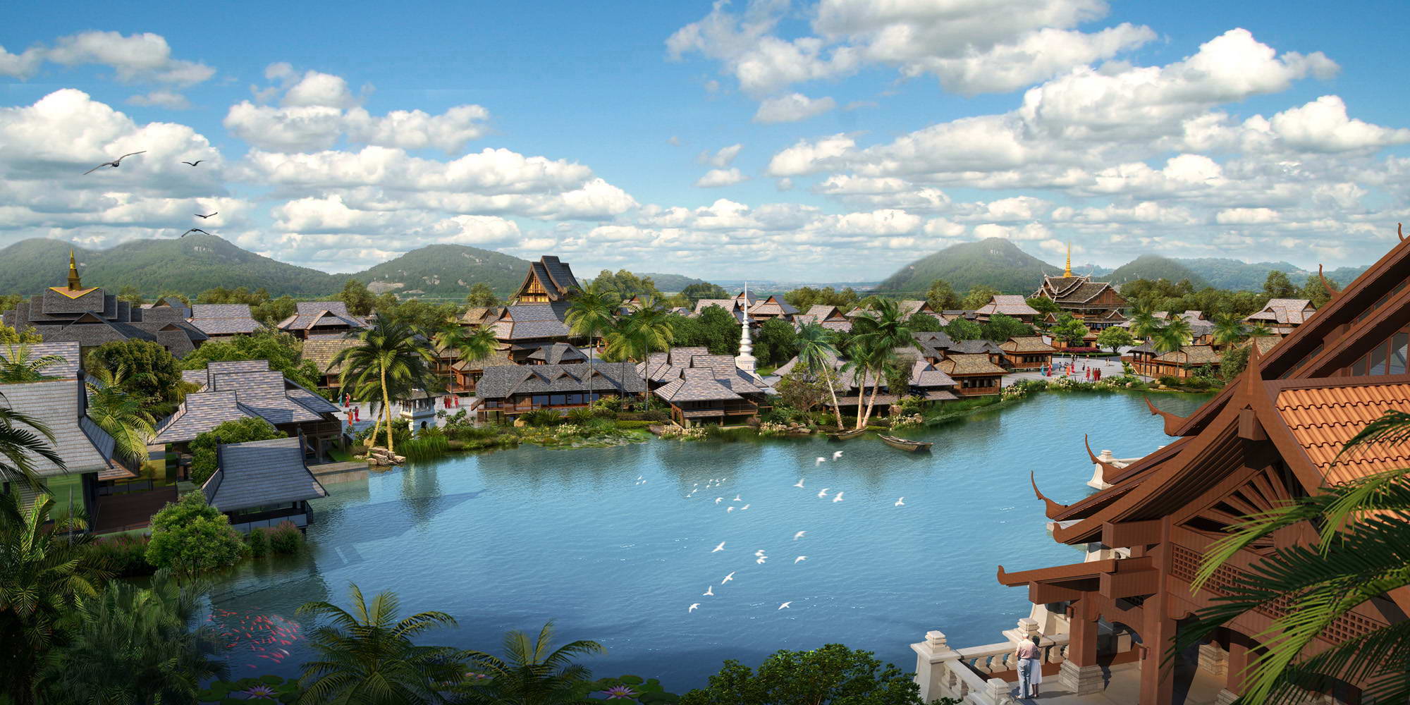 Site Plan and Architecture Design of Dai Water Town in the Olive Dam